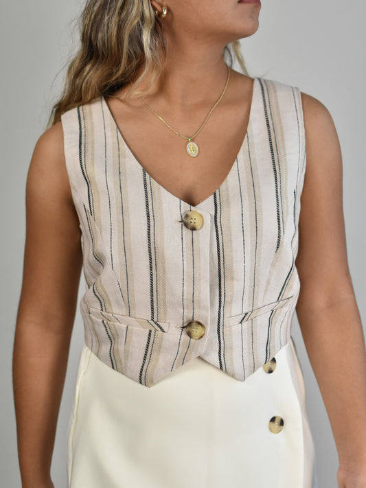 TOP DE ENCAJE CON MANGAS ABULLONADAS EN COLOR BEIGE