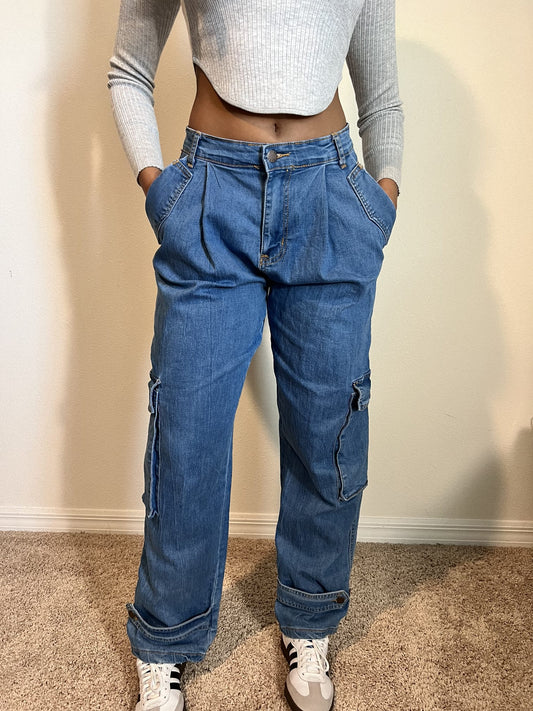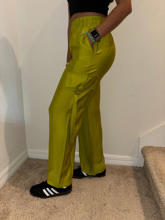 PANTALONES CARGO DE SATÉN CON PIERNA ANCHA