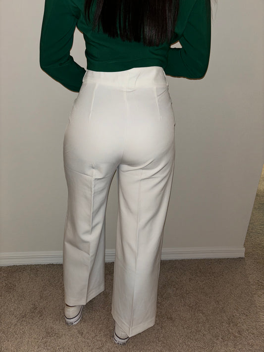 PANTALONES DE TIRO ALTO CON ESPALDA ELÁSTICA Y PIERNA ANCHA