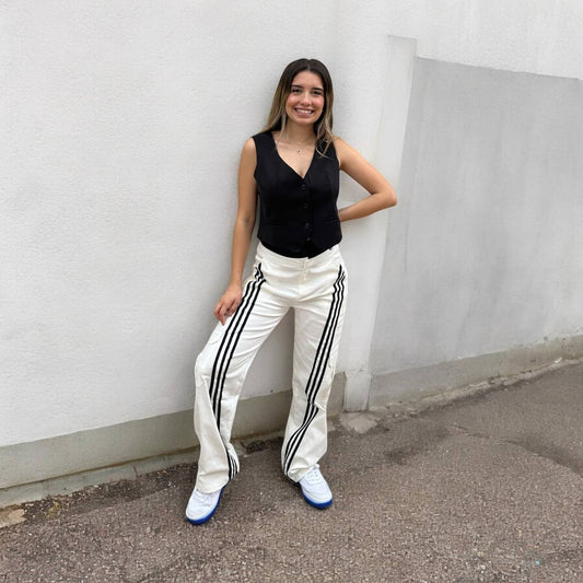 PANTALONES CON DETALLES DE PARCHE LATERALES Y RAYAS EN CONTRASTE