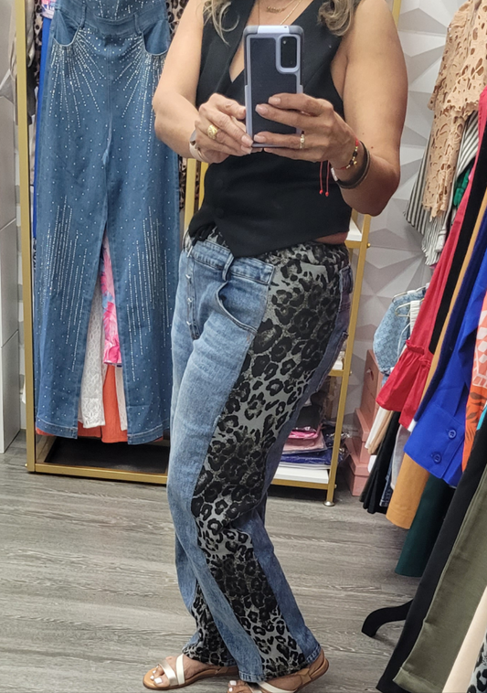PANTALÓN CONTRASTE ESTAMPADO ANIMAL