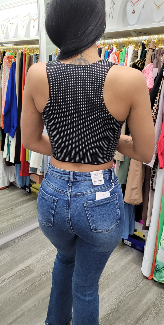 TOP DE PUNTO CON STRASS POR TODO EL ALREDEDOR