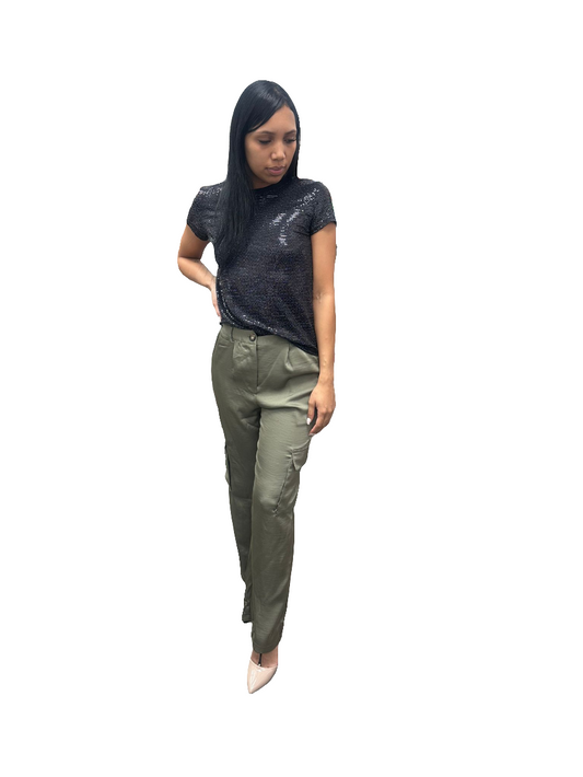 PANTALONES CARGO DE SATÉN CON PIERNA ANCHA