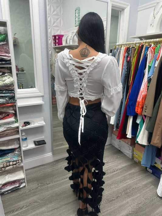 BLUSA CORTADA CON VOLANTES Y MANGA LARGA