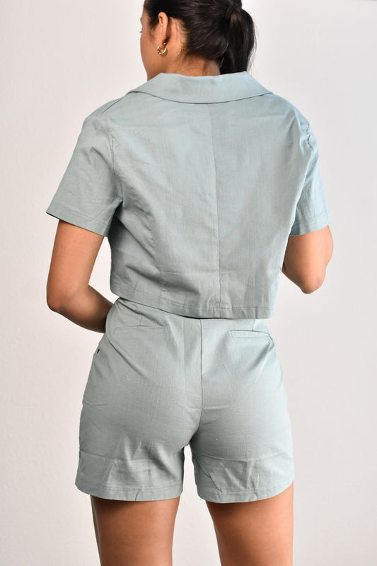 CONJUNTO DE 2 PIEZAS DE TOP CORTO CON TEXTURA ARRUGADA