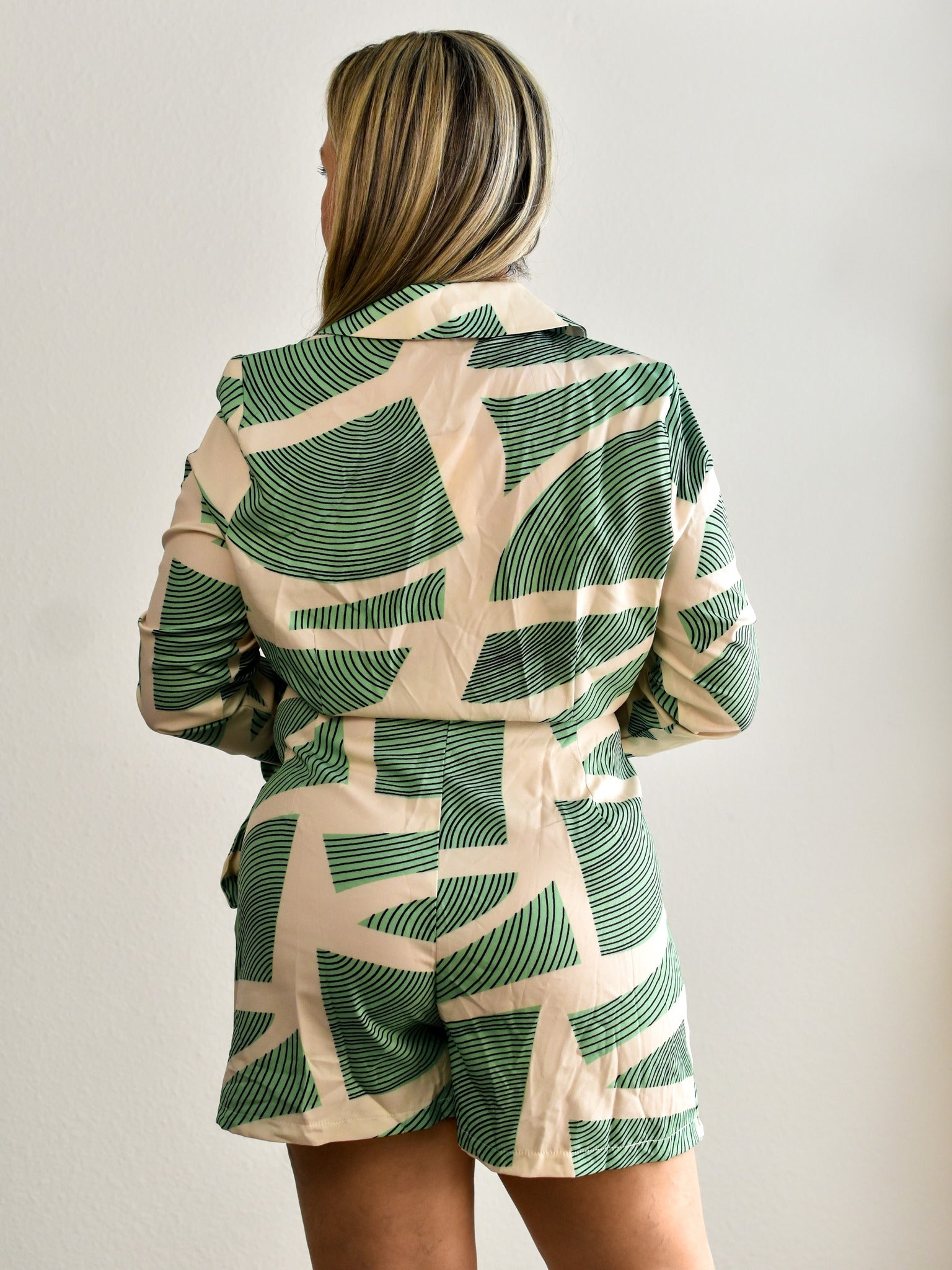 Vestido Beige con Figuras Verdes